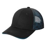The front panels are black twill, while the mid and back panels layer color under the mesh for an iridescent effect.