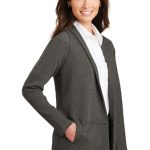 This lightweight, dual-color cardigan layers beautifully and has a timeless appeal. An open front and front and back seaming details at the waist give it sophistication.
