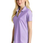 This comfortable micro pique polo has an exceptionally soft feel. Tailored for a feminine fit, the design features a Johnny collar and open hem sleeves.